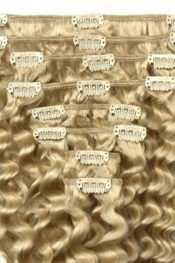 Curly Full Head Remy Clip In Human Hair Extensions – Light Ash Blonde (#22)
