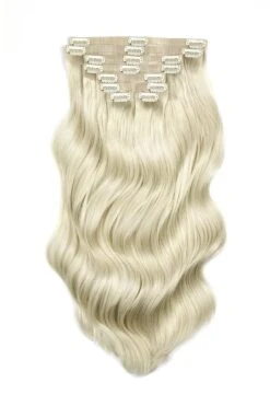 Full Head Remy Clip In Human Hair Extensions – Lightest Blonde (#60)