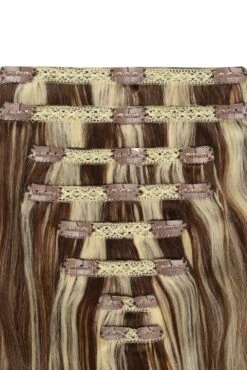 Double Wefted Full Head Remy Clip In Human Hair Extensions – Iced Cappuccino (#14/22)