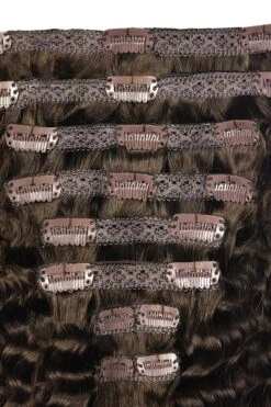 Light/Chestnut Brown (#6) Double Wefted Full Head Clip In Hair Extensions
