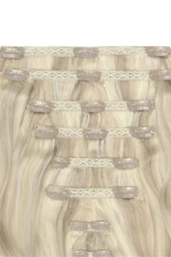 Double Wefted Full Head Remy Clip In Human Hair Extensions – Platinum BlondeMe