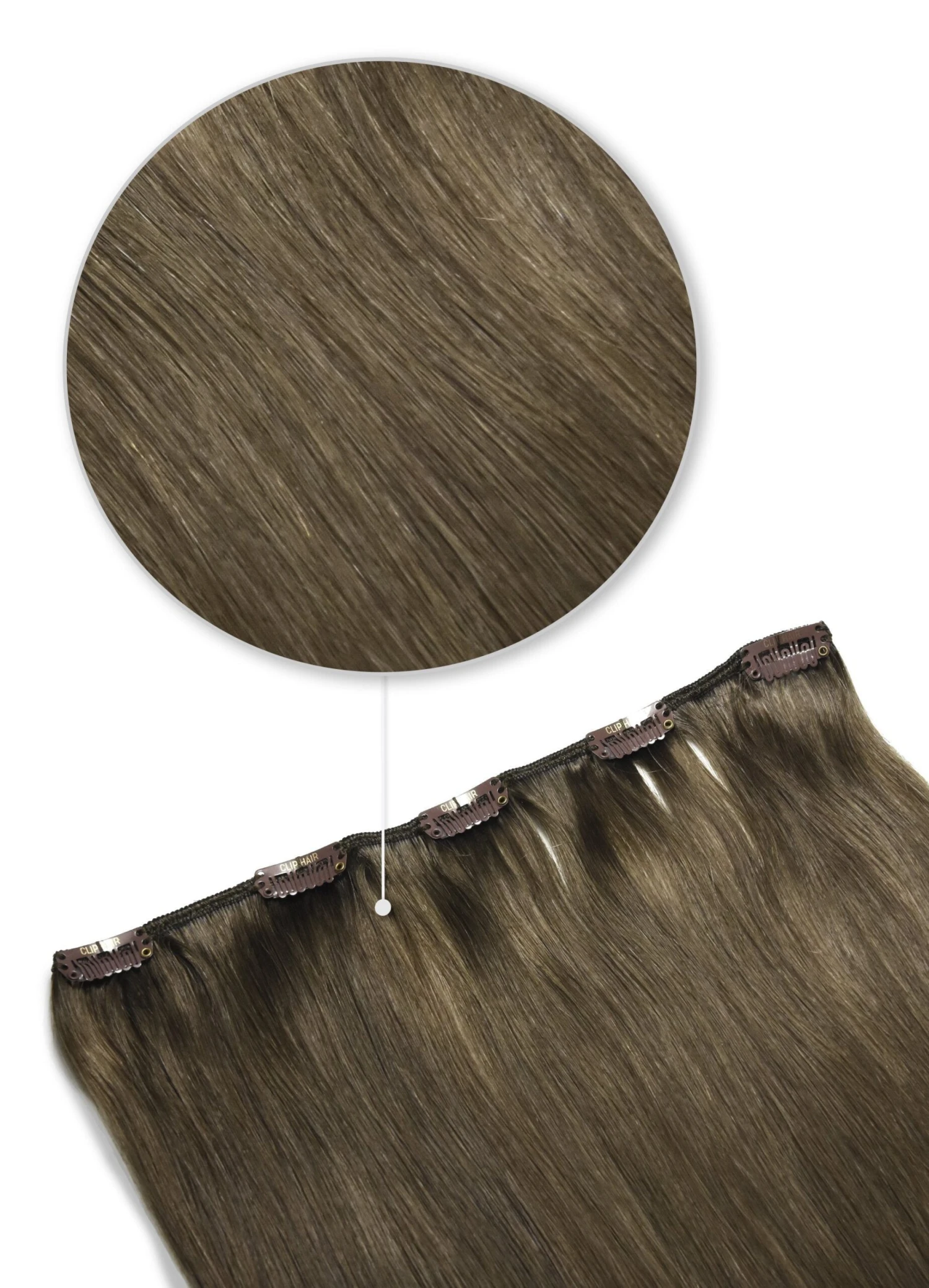 This is the fastest way to extend your hair. A single section usually applied to the back of the head using the five attached clips.