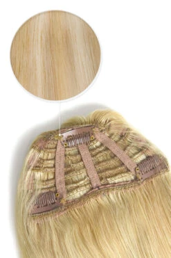 This Barbie Blonde (#16/60) clip in fringe hair set comes complete with 3 metal clips already attached to the weft complete with silicone tubing for a secure grip.
