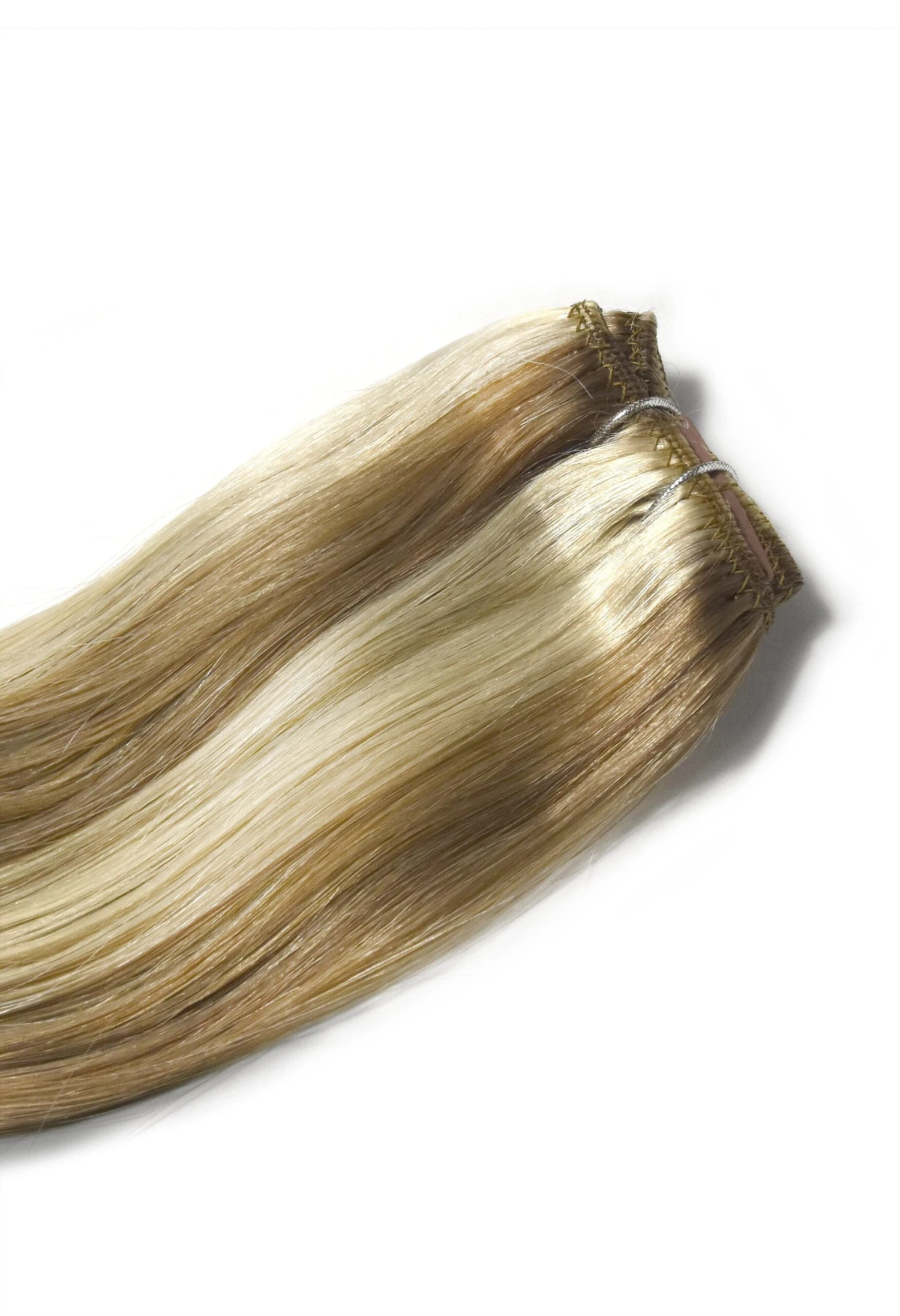 Double Wefted Full Head Remy Clip In Human Hair Extensions – Biscuit Blondey (#18/613)