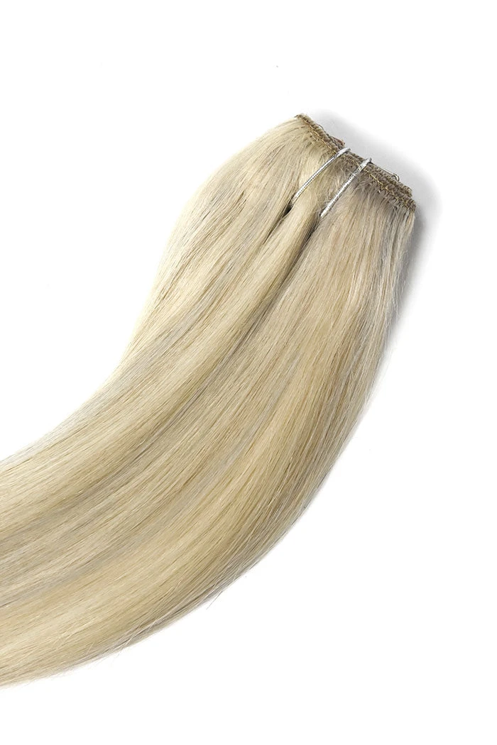 The Quad Weft is a revolutionary hairpiece containing FOUR strips of hair securely sewn onto one thick weft. The 10 inch wide piece securely clips on to your head, from ear to ear – instantly adding length and thickness for a complete hair transformation. One Quad Weft contains nearly as much as full head set, and if you want a really thick and luscious look, why not pop on two – giving you nearly as much thickness as a double wefted set in two simple steps.