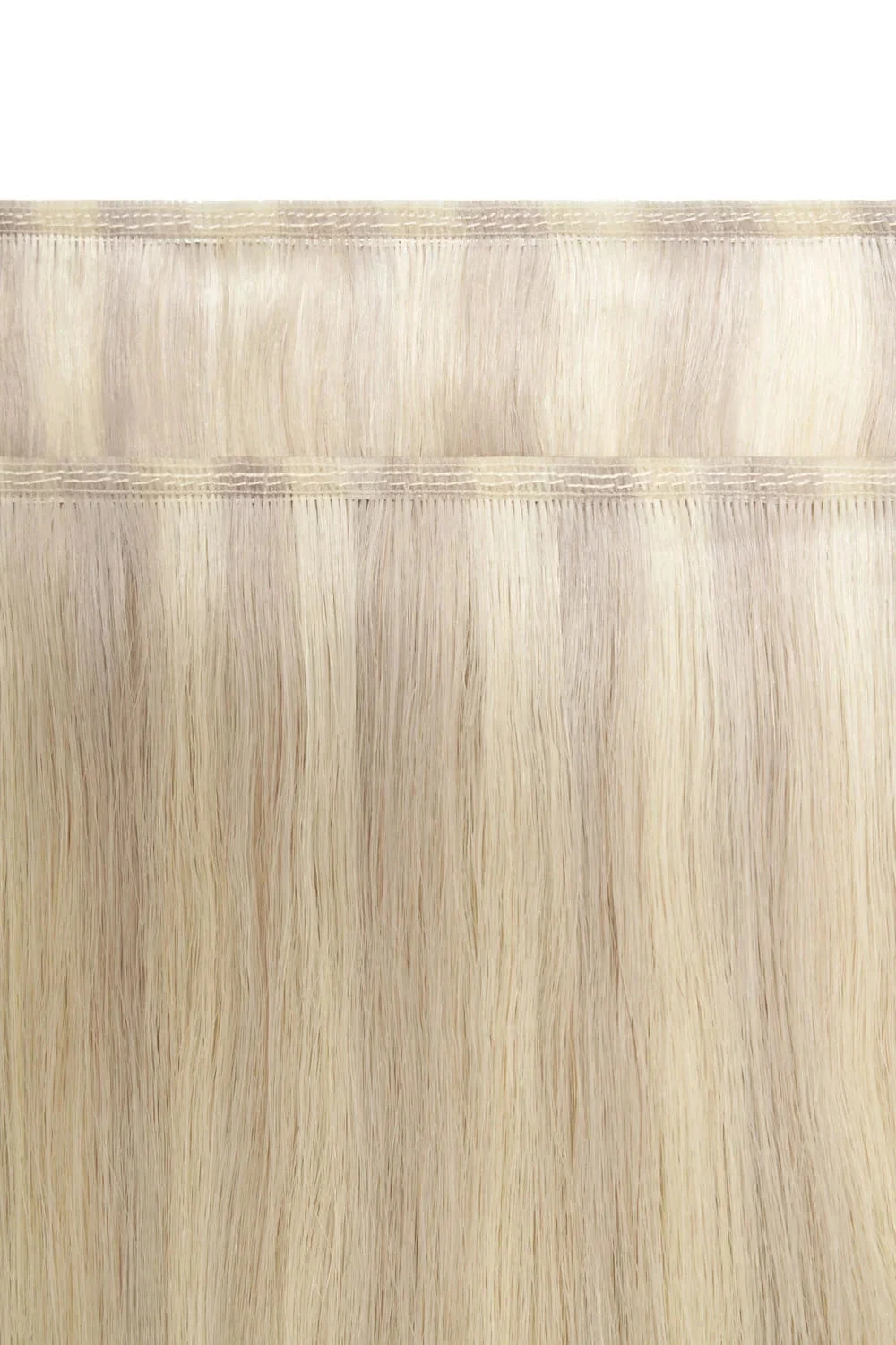 Your standard weft, now improved for an even more discreet, seamless and natural-looking finish. The same speedy application and volumous results but with a less fragile, smaller seam which equals less shedding, less tangling, longer lasting hair extensions. Made from AAAAA grade, double drawn, top quality, Remy human hair the flat weft can be re-used again and again making it one of the most cost effective hair extension methods.