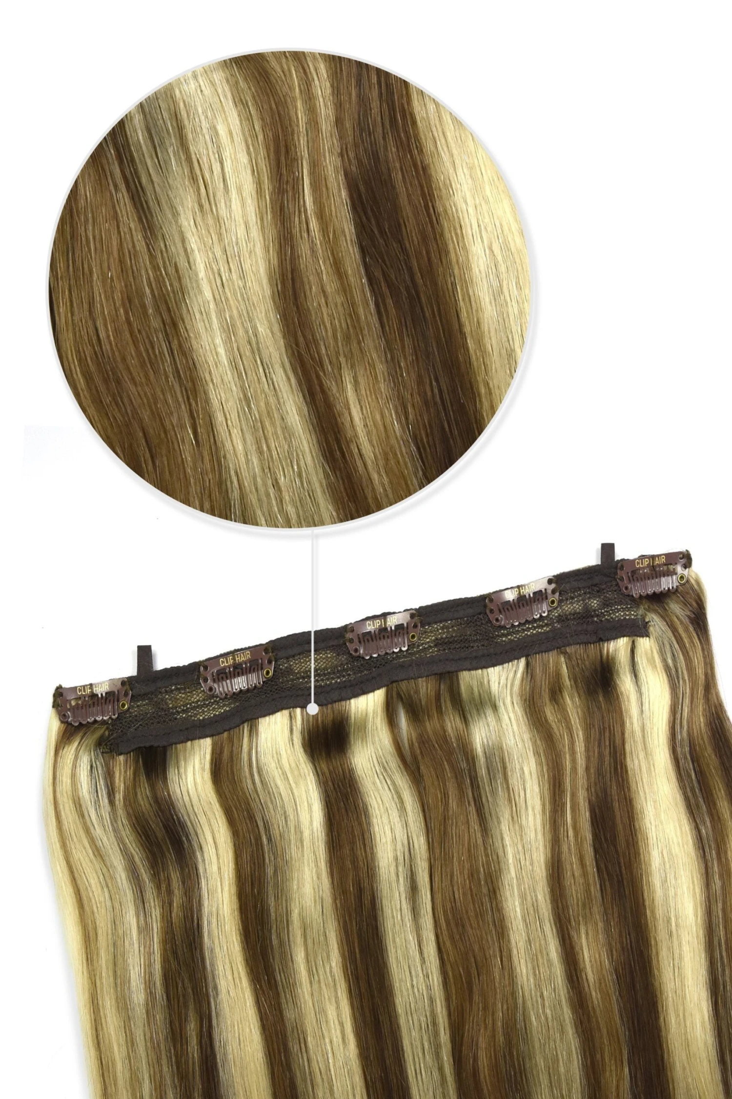Chestnut Bronde (#6/613) Quad Weft Clip In One Piece Hair Extensions
