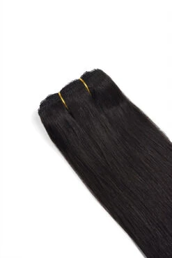 This is the fastest way to extend your hair. A single section usually applied to the back of the head using the five attached clips.