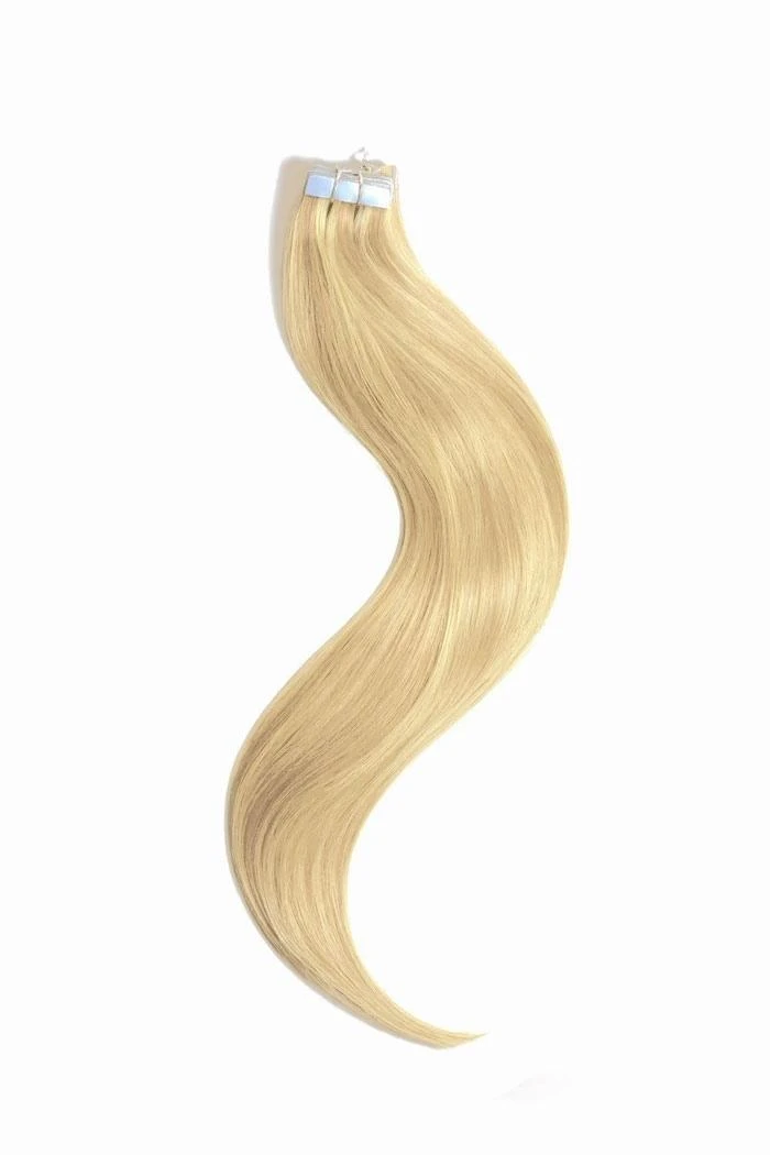 Change upย your style with our Creamy Blonde (#22/613) Tape In Hair Extensions. Made with 100% silky soft Remy human hair, making them easy to wash and style.