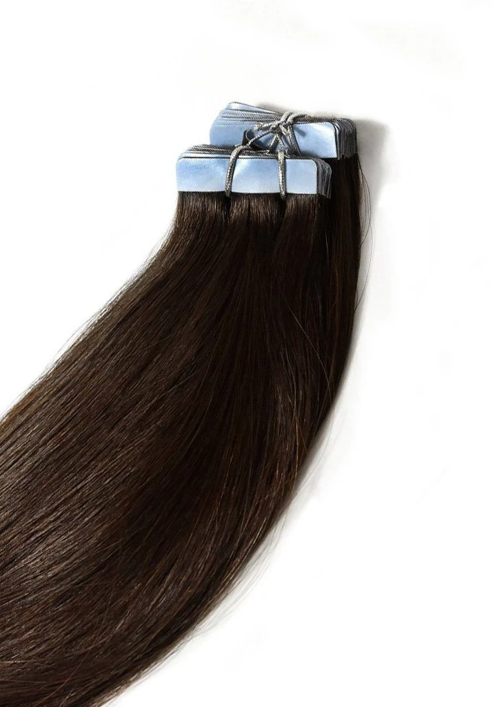 Complete your celeb transformation with our best selling Dark Brown Tape In Hair Extensions. Made with repositionable, discreet adhesive wefts, once applied you will have thicker, longer, fuller hair in next to no time.