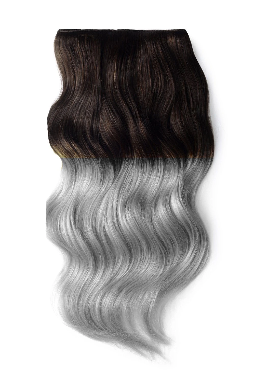 Double Wefted Full Head Remy Clip In Human Hair Extensions - Dark Brown/Silver Ombre (#T2/SG)