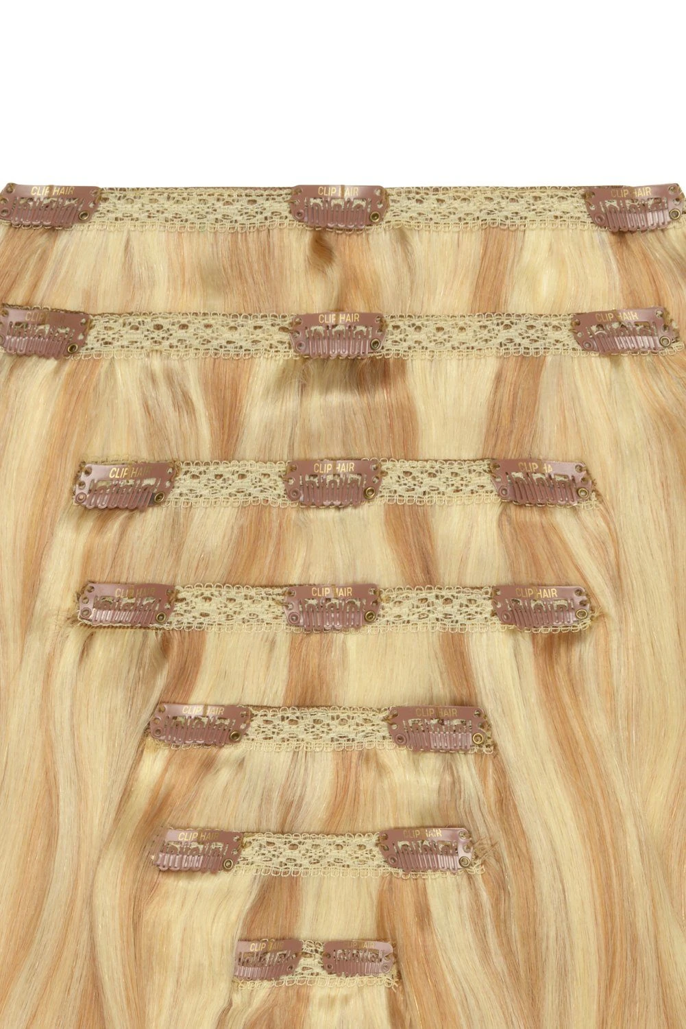 Double Wefted Full Head Remy Clip In Human Hair Extensions - Peaches & Cream (#27/613)