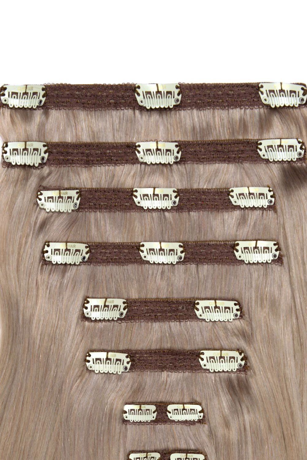 Discover our best-selling Double Weft Clip-In Hair Extensions, the ultimate solution for all hair types. These clip-ins are expertly crafted to add impressive length and volume, seamlessly blending with your natural hair for an undetectable finish. Designed for quick and easy application, you can achieve a stunning transformation in just 5 minutes.