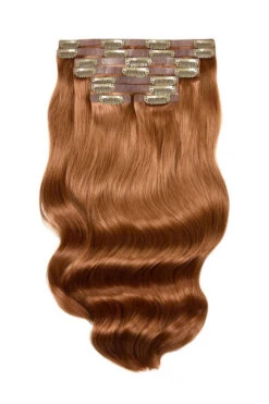 Our Flaming Ginger (#350) Seamless Clip In Hair Extensions are a full head set weighing 150g. The seam is soft and lays flat to the head, leaving your extensions almost undetectable. The seamless technology also protects the hair from shedding and tangling.