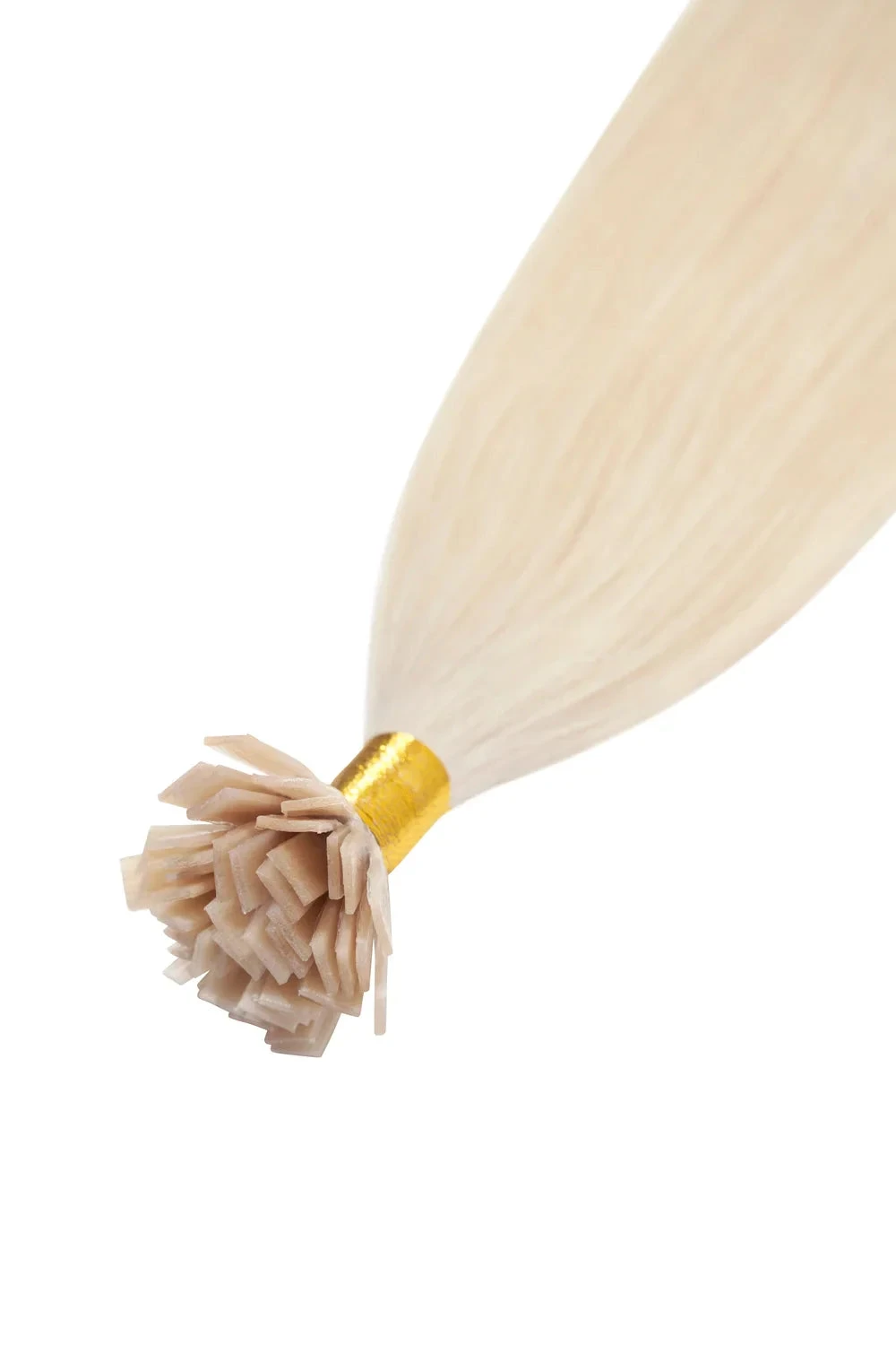 Our Remy Royale Flat Tips provide a discreet, low maintenance, long lasting and comfortable pre-bonded extension option to your clients. These sturdy hair extensions will stay in place for up to three months with little to no shedding. Made from AAAAA grade, double drawn, remy human hair their flatter surface is easier to heat and mould around the natural hair.