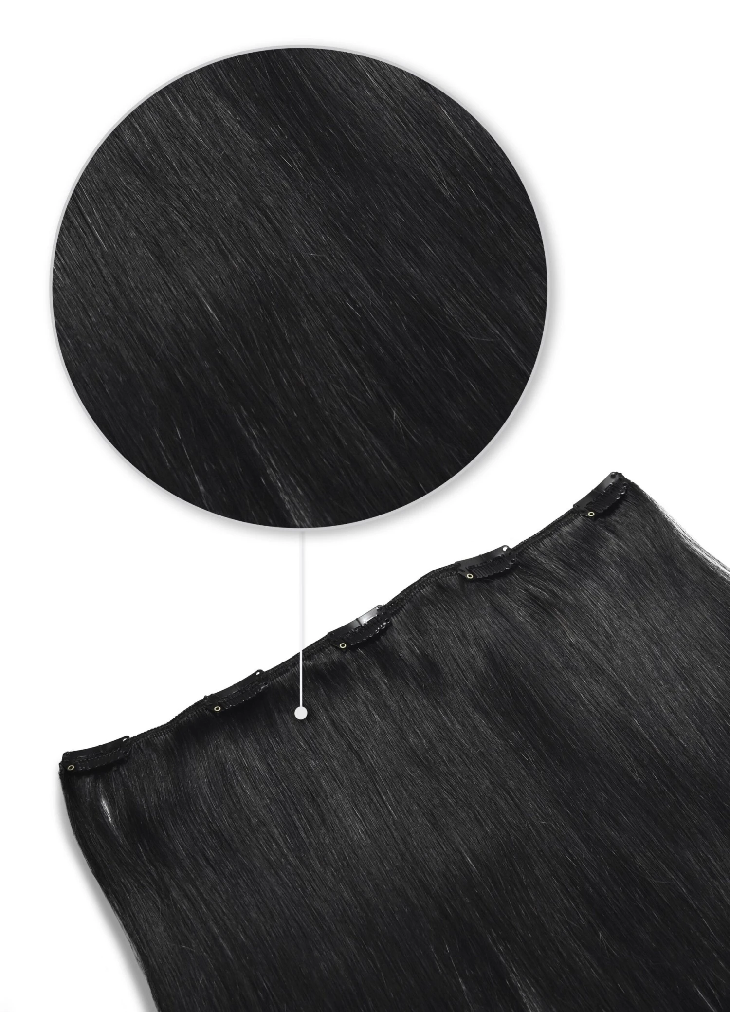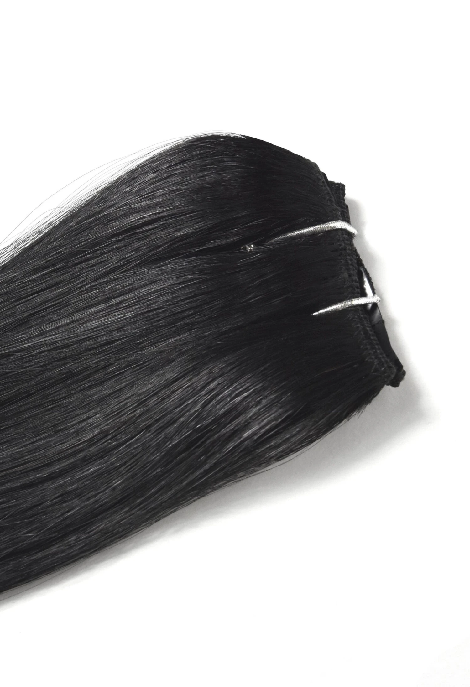 One piece clip in hair extension in Jet Black.