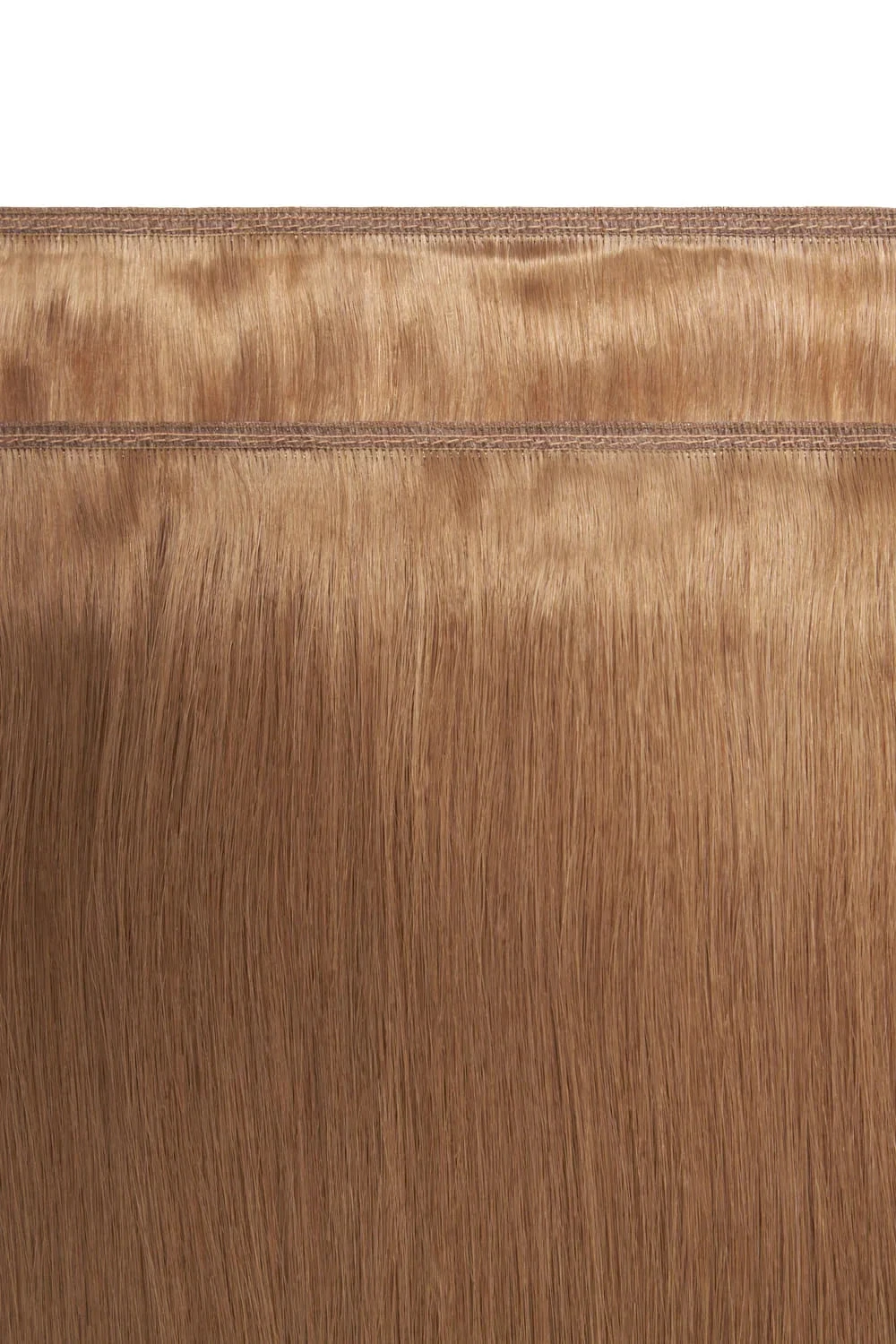 Your standard weft, now improved for an even more discreet, seamless and natural-looking finish. The same speedy application and volumous results but with a less fragile, smaller seam which equals less shedding, less tangling, longer lasting hair extensions. Made from AAAAA grade, double drawn, top quality, Remy human hair the flat weft can be re-used again and again making it one of the most cost effective hair extension methods.