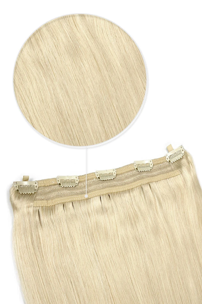 The Quad Weft is a revolutionary hairpiece containing FOUR strips of hair securely sewn onto one thick weft. The 10 inch wide piece securely clips on to your head, from ear to ear – instantly adding length and thickness for a complete hair transformation. One Quad Weft contains nearly as much as full head set, and if you want a really thick and luscious look, why not pop on two – giving you nearly as much thickness as a double wefted set in two simple steps.