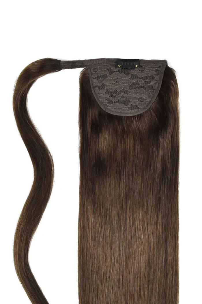 Introducing our fastest selling Medium Brown (#4) Straight Up Wrap Around Ponytail in three sumptuously thick lengths for all hair types. Featuring built in combs that grip under your bobble and Velcro straps to secure your perfect pony in place, our mid brown Wrap Around Ponytail couldn’t be easier to apply.