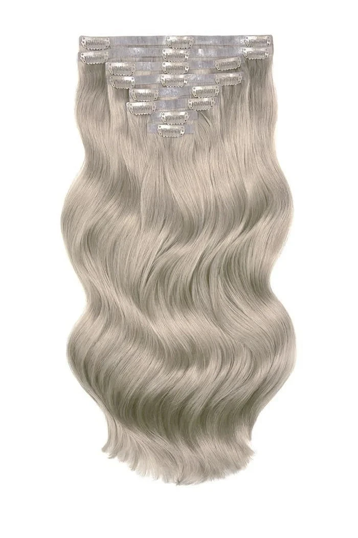 Our Silver Sand (#SS) Double Drawn Seamless Clip In Hair Extensions are a full head set weighing 150g. The seam is soft and lays flat to the head, leaving your extensions almost undetectable. The seamless technology also protects the hair from shedding and tangling.