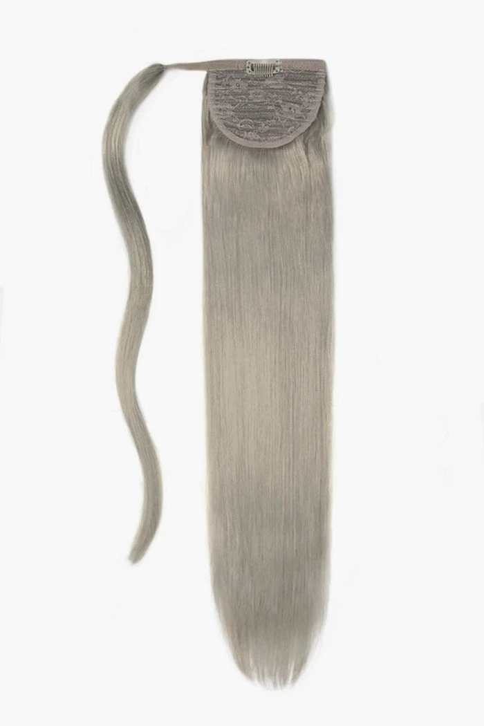 Remix your style with our vibrant silky Silver/Grey (#SG) Straight Up Wrap Around Ponytail, made from real Remy human hair. Available in three lustrous lengths and endless styles at your fingertips, our new blonde ponytail extensions are sure to become a celebrity staple.