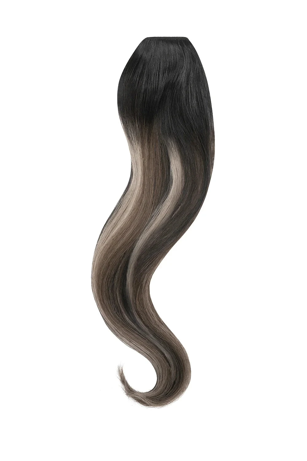 This is the fastest way to extend your hair. A single section usually applied to the back of the head using the five attached clips.
