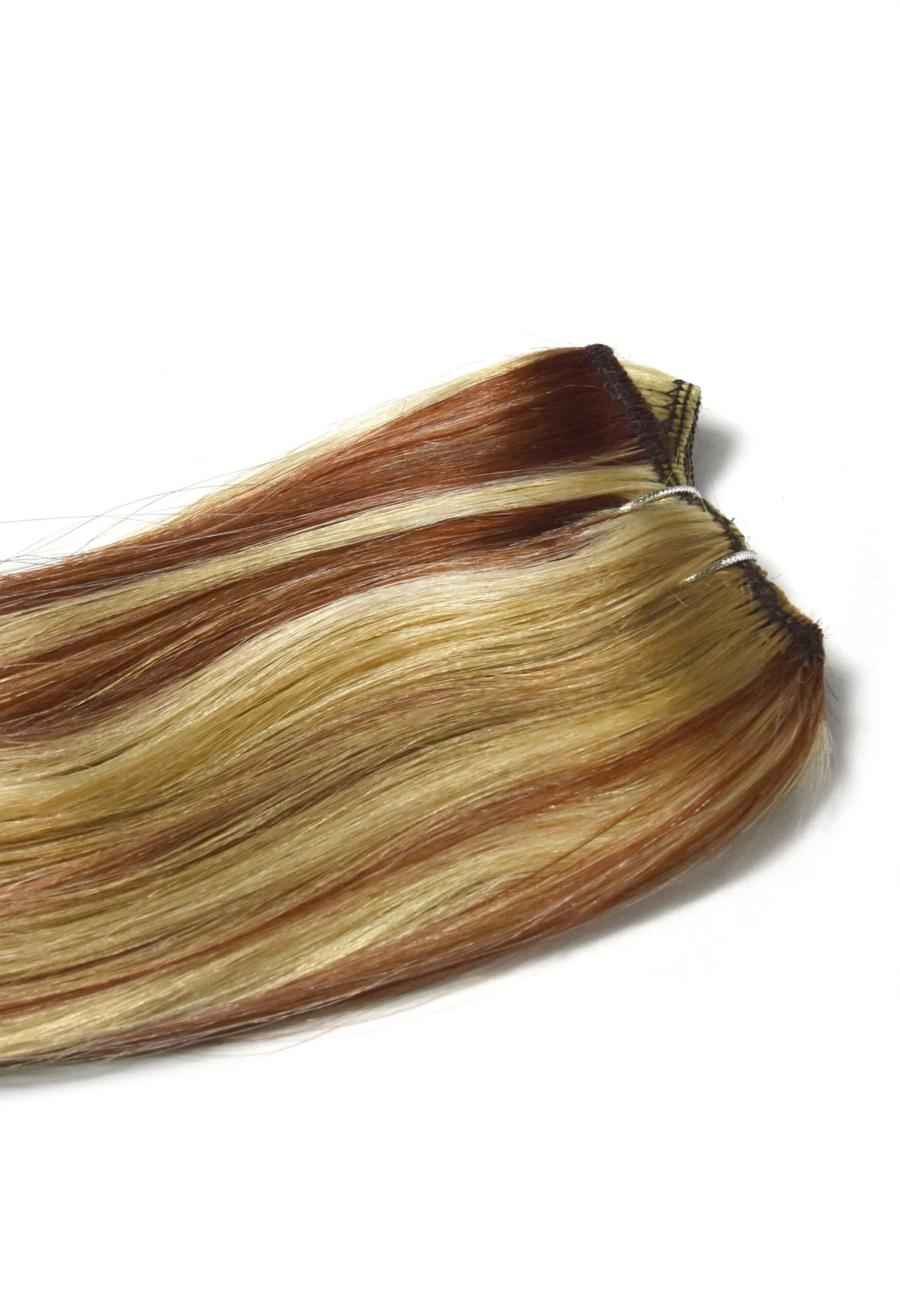 One piece clip in hair extension in Strawberry, Auburn Red and Bleach Blonde Mix.