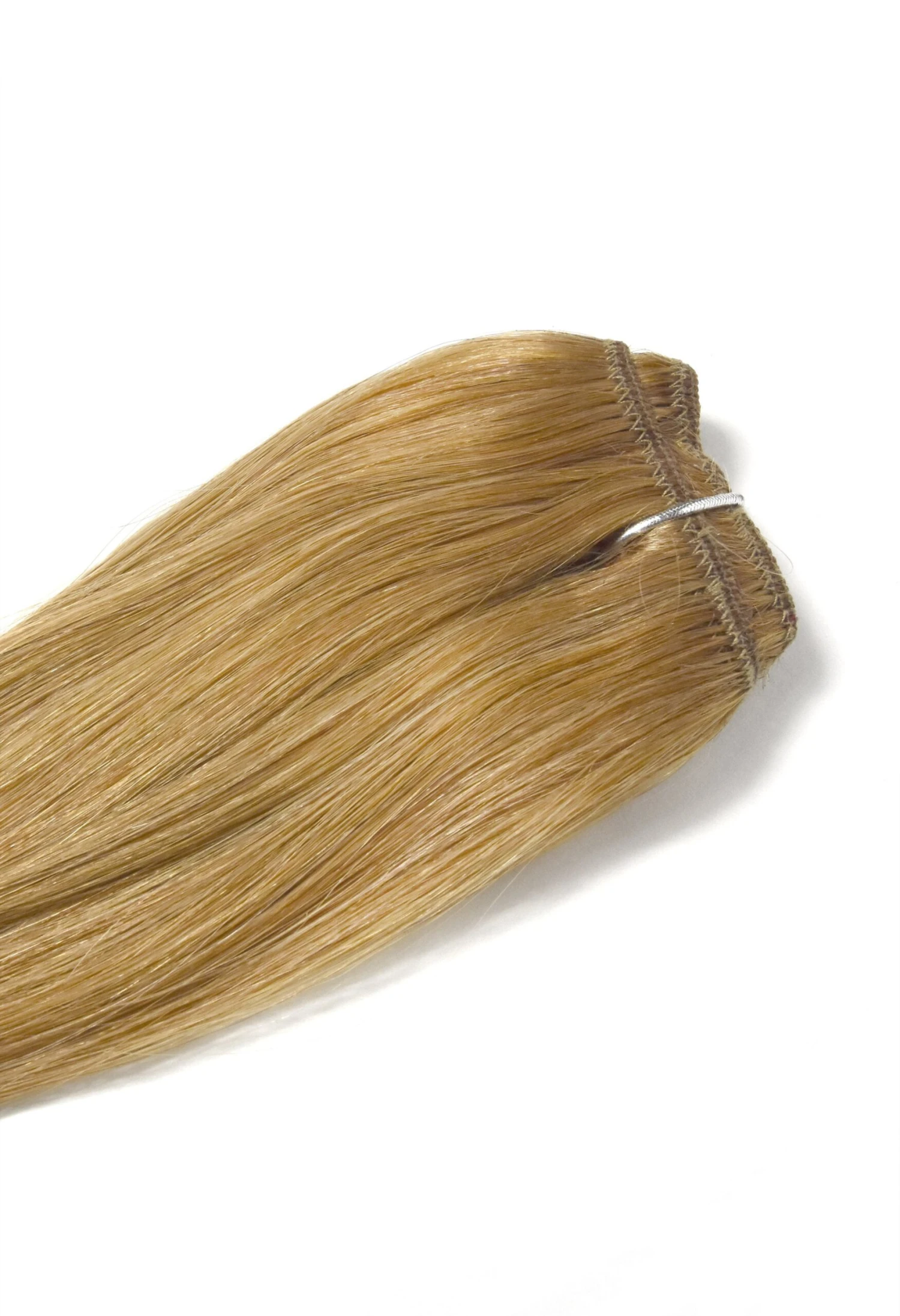 This is the fastest way to extend your hair. A single section usually applied to the back of the head using the five attached clips.