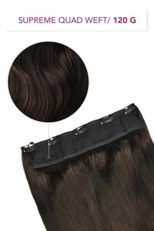 Giving you more hair, less clips, and just as discreet and undetectable as our single and double weft sets, our Supreme Quad Weft hair extensions are an instant solution for the ultimate volume and maximum comfort.
