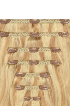 Double Wefted Full Head Remy Clip In Human Hair Extensions – Natural Sandy Blonde (#12/16/613)