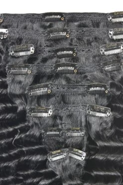 Jet Black (#1) Double Wefted Full Head Clip In Hair Extensions